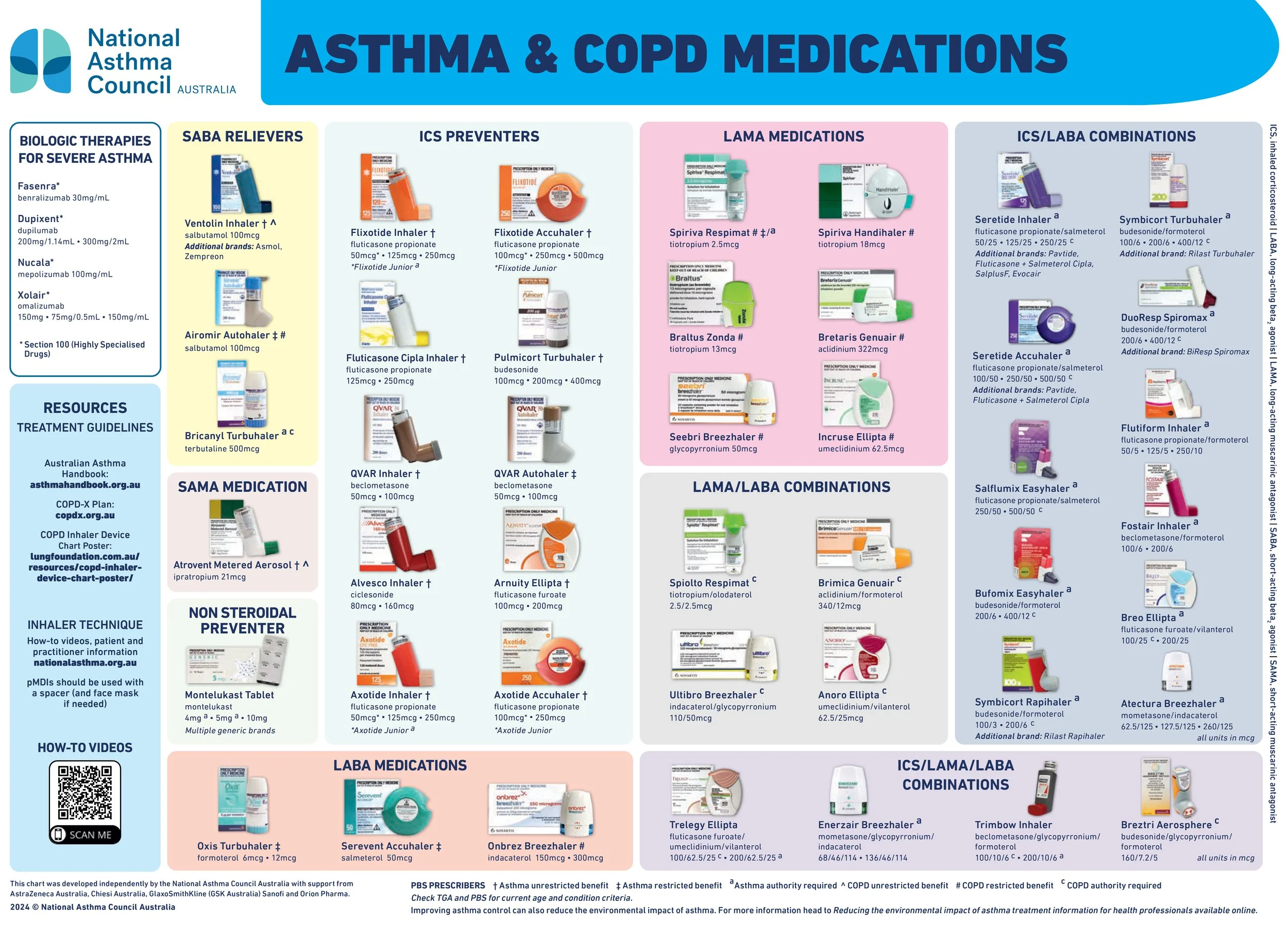 The National Asthma Council Australia has released its updated Asthma and COPD Medications Chart, an essential guide to the main types of asthma and COPD medications available in Australia, updated September 2024.