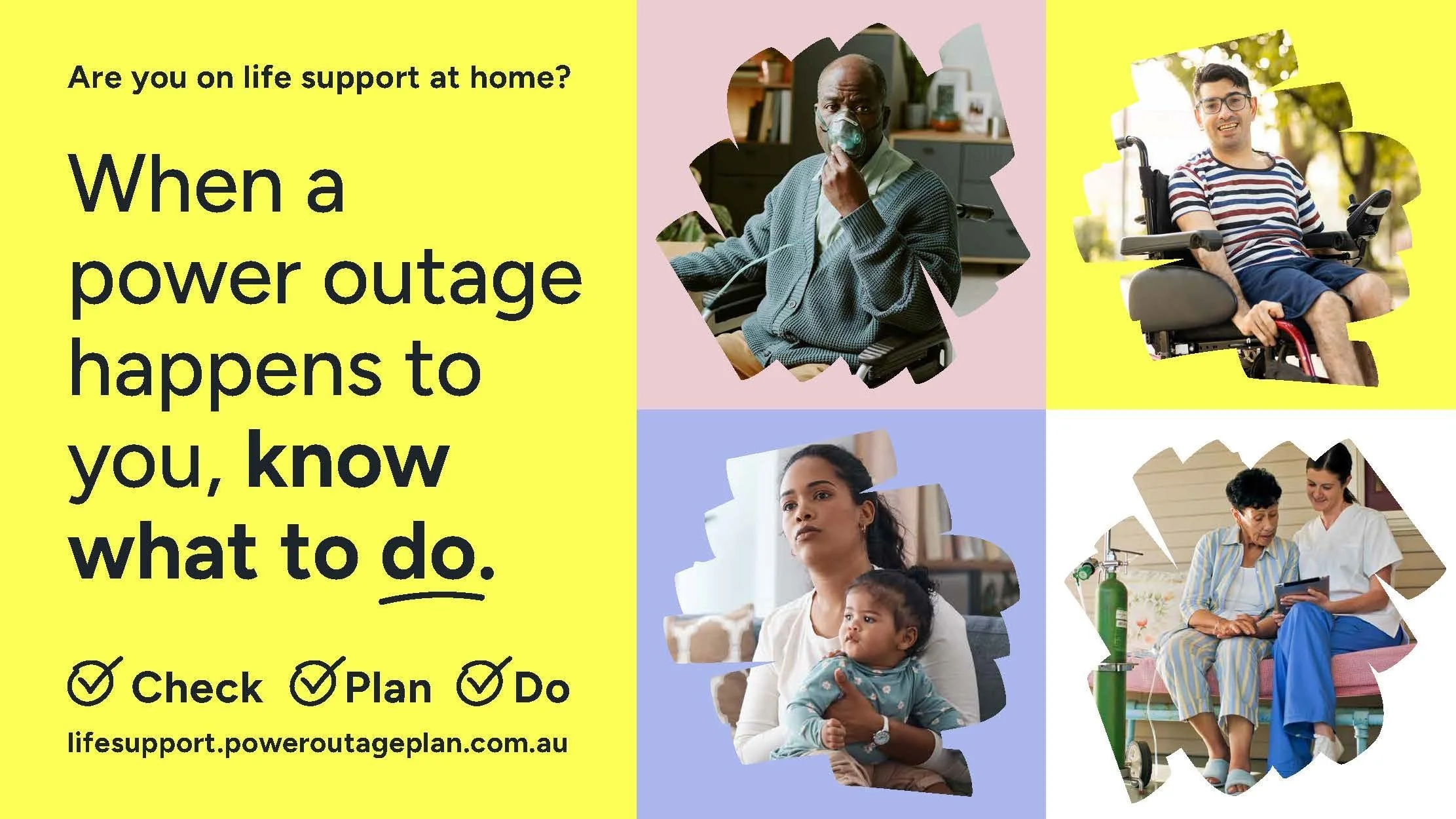 Even if your energy provider knows you’re a Life Support customer, you must still plan ahead. In the moment of an outage, it’s up to you and your carer to act effectively.The CHECK. PLAN. DO. approach