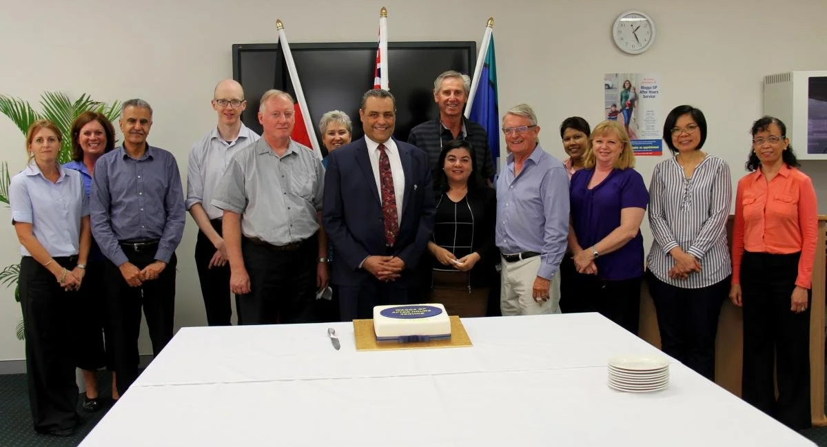 Chair of the WGPAHS Cooperative, Associate Professor Ayman Shenouda, and some of the GPs and staff of the WGPAHS met today for lunch and to cut a celebratory cake.