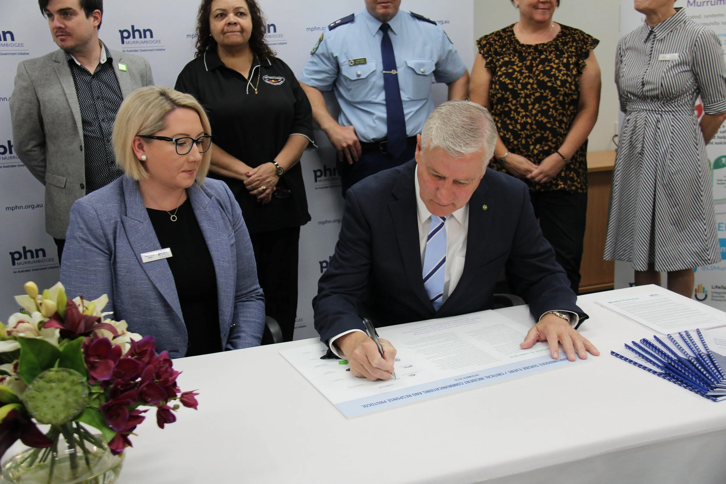 Deputy Prime Minister and Federal Member for Riverina, The Hon Michael McCormack MP, together with the region’s first responders, mental health agencies, local government representatives, and the Department of Education, today signed a formal Statement of Commitment to providing a coordinated approach to suicide prevention and postvention supports across the Murrumbidgee region.