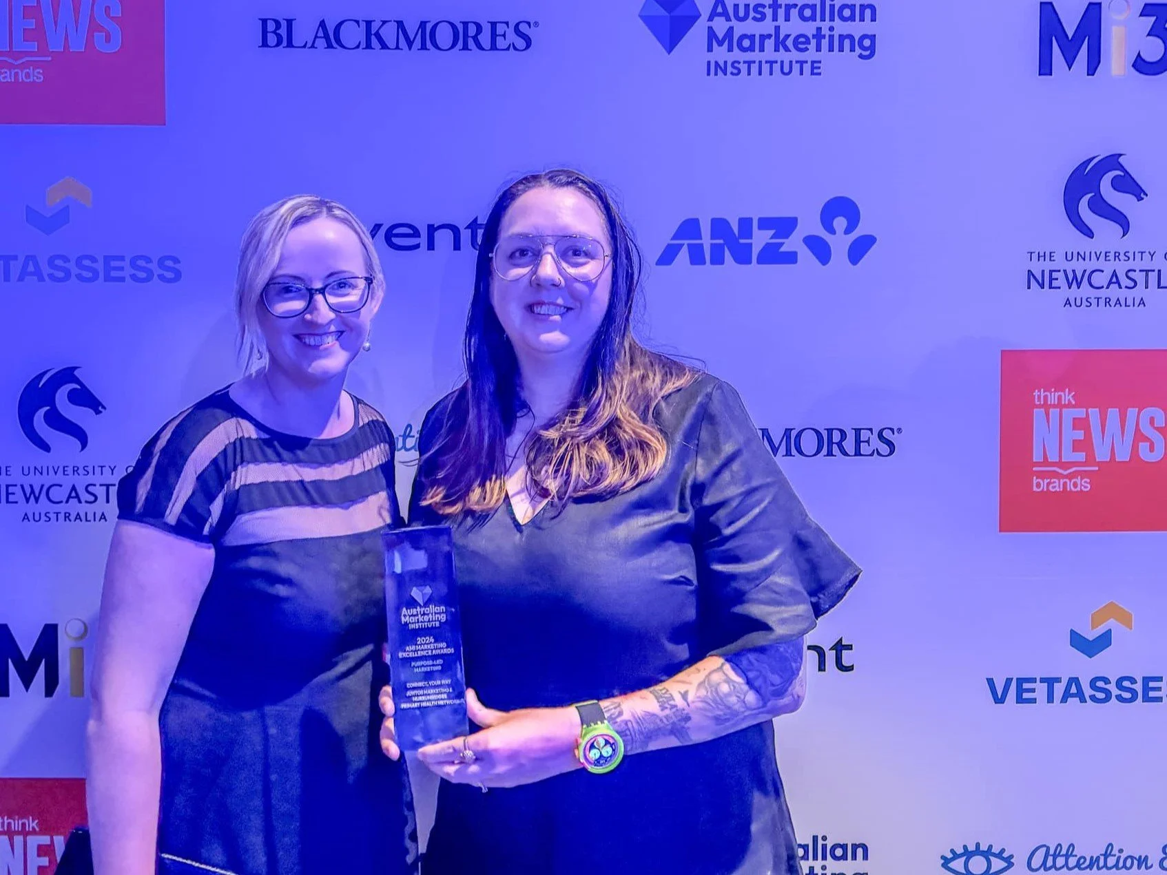 Senior Manager Corporate Services Kristy Hawkins and Brand and Marketing Lead Cristy Houghton celebrated MPHN’s win at the 2024 Australian Marketing Institute (AMI) Marketing Excellence Awards in Sydney.
