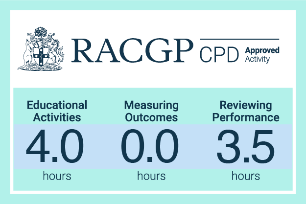 This event is accredited for 4hrs Educational Activity (EA) and 3.5hrs Reviewing Performance (RP).